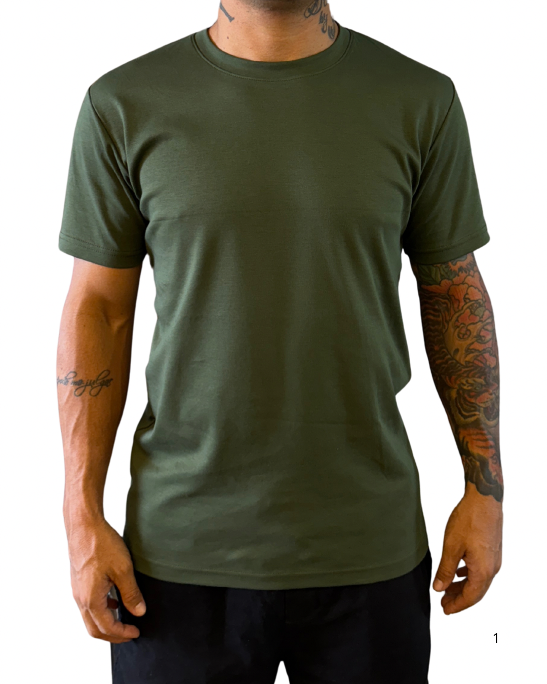 Camisa Básica Verde Militar Algodão Peruano